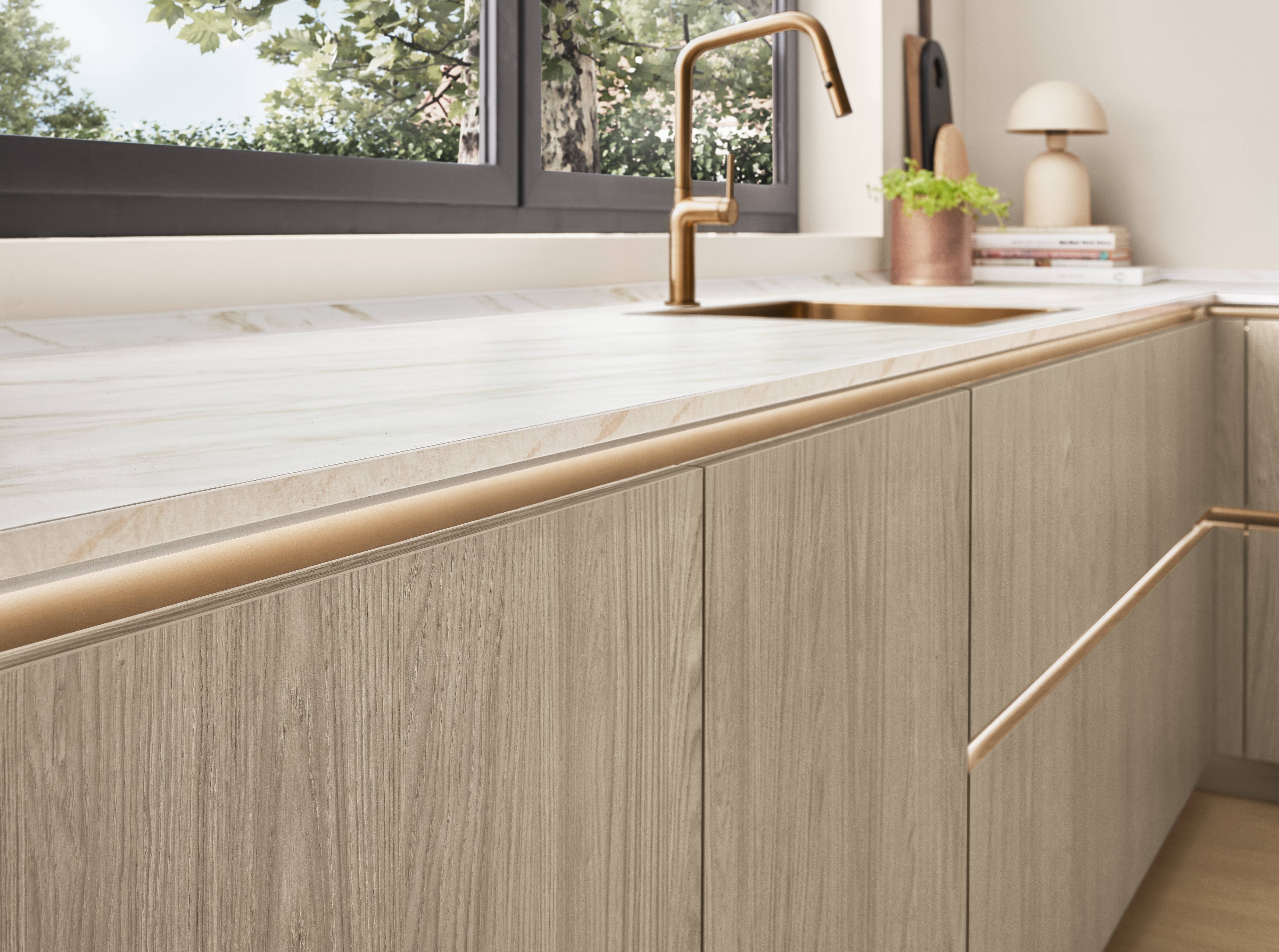 Holzoptiken sind die zentralen Elemente für die von der Natur inspirierten Küche VILLACH_WIEN von PAUL LEVÍN und schaffen Behaglichkeit, die zu jedem Einrichtungsstil passt. Materialien wie Marmor oder Granit bringen gemeinsam mit den facettenreichen Holzdekoren die Schönheit der Natur in Ihren Alltag.