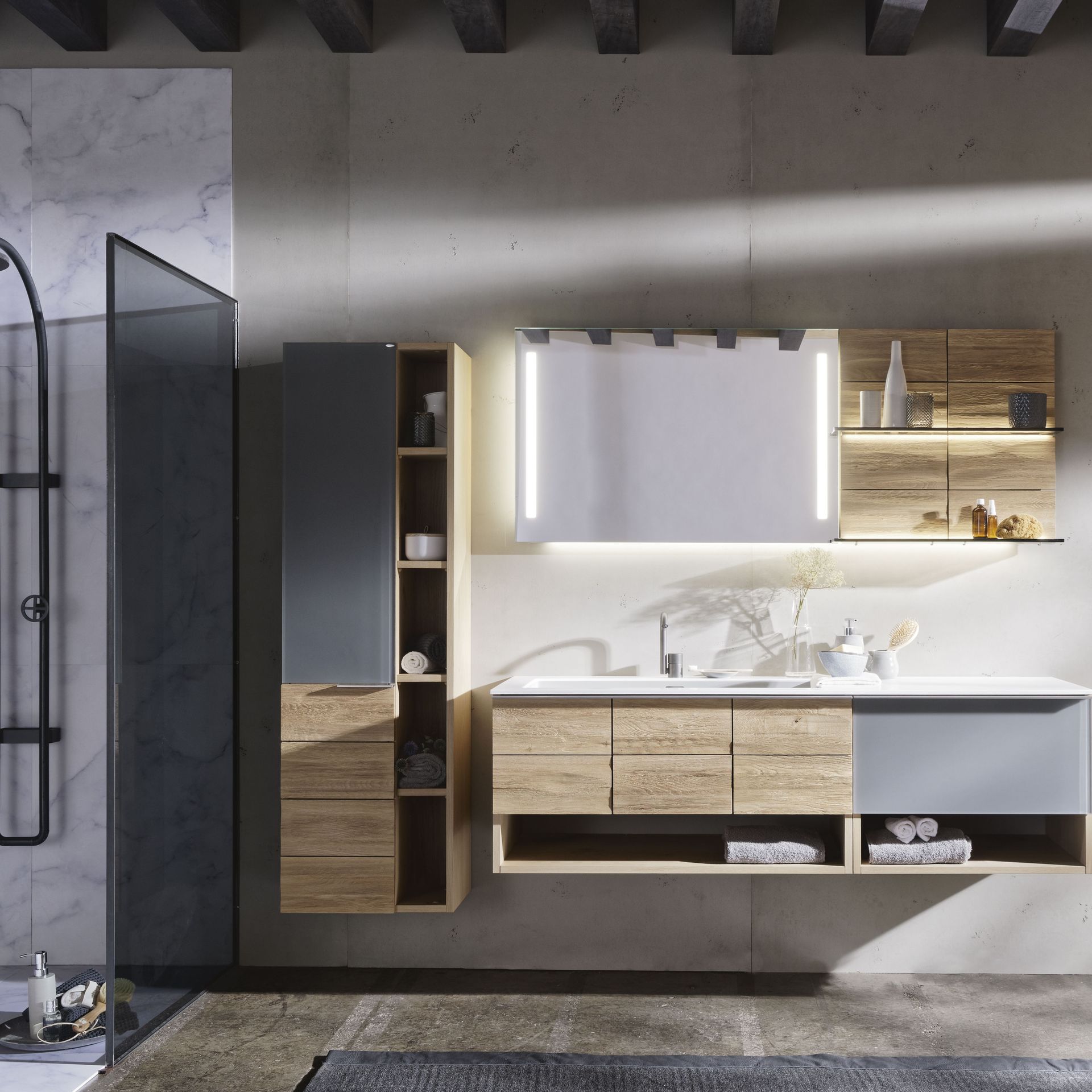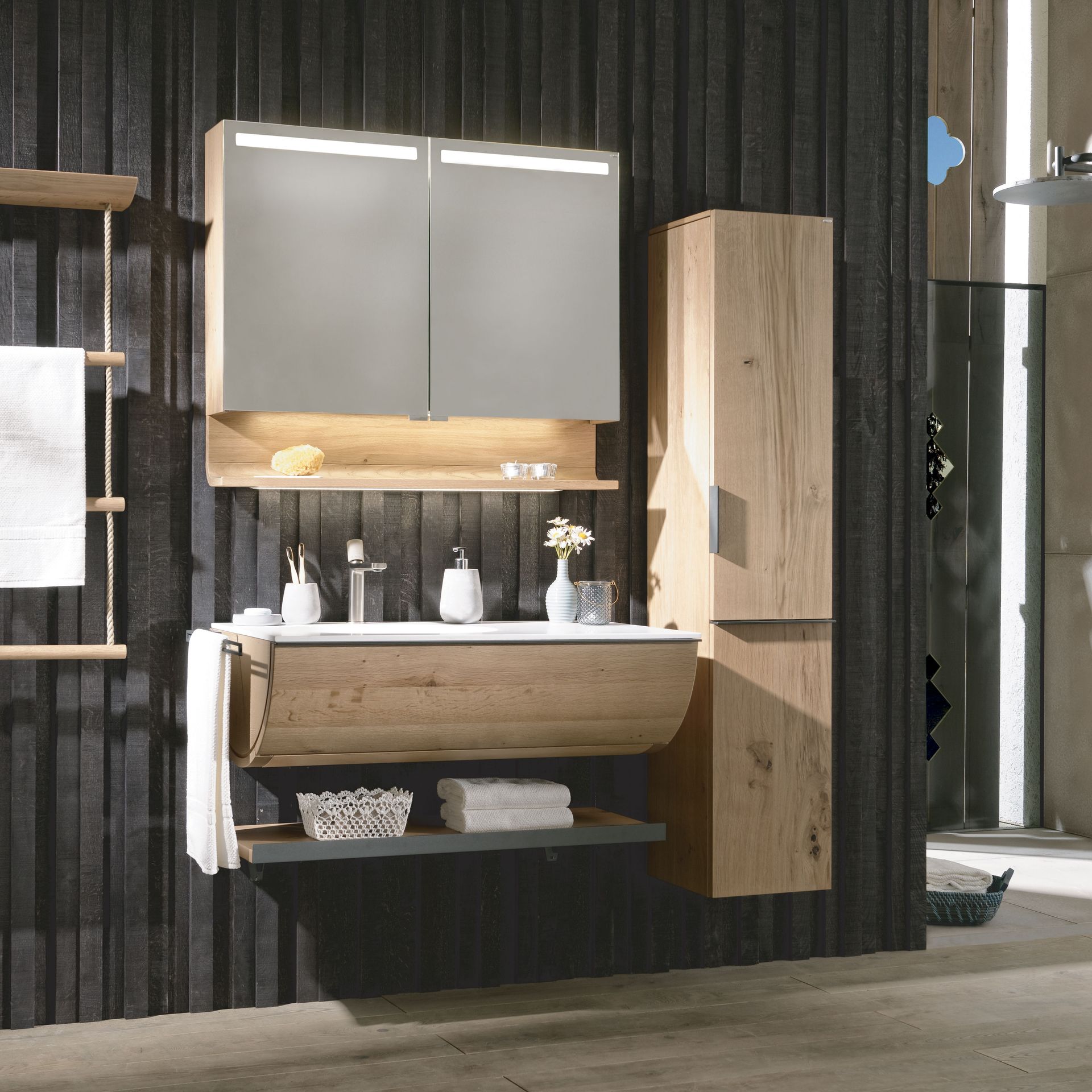 Das Badezimmerlicht sollte nach Möglichkeit freundlich sein. Denn wenn einen das eigene Spiegelbild nicht nur unausgeschlafen, sondern auch bis ins letzte Detail ausgeleuchtet am Morgen begrüßt, dreht man am liebsten gleich wieder um. Für einen guten Start in den Tag ist daher eine ausgewogene und stimmungsvolle Beleuchtung vorteilhaft. Sie sorgt außerdem für ein freundliches Wohlfühlambiente und ideale Lichtverhältnisse. Eine extra Wandlampe oder eine dimmbare Spiegelleuchte machen da bereits einen großen Unterschied.